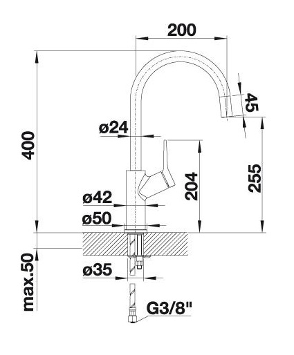 Легкое подключение гибкими шлангами длиной 450 мм с гайкой ⅜''